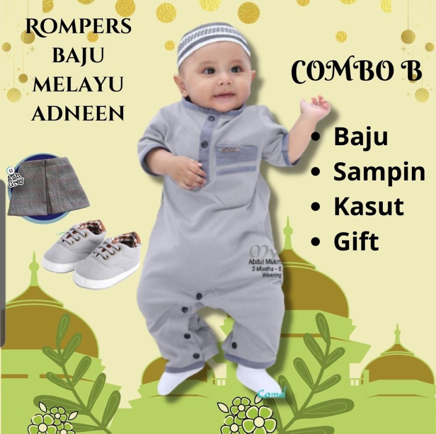 COMBO A ROMPERS BAJU MELAYU QALISH - (Ready Stock) - Baju + Kasut + Kopiah + Free Gift